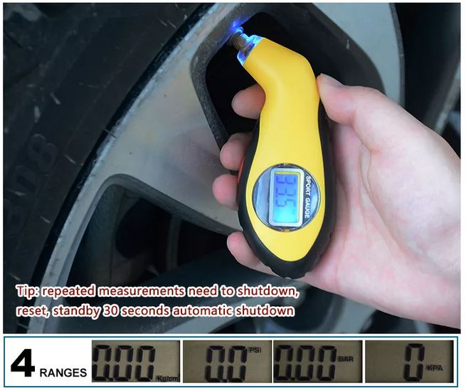 Este medidor de presión cuenta con una pantalla LCD retroiluminada, lectura ultra rápida y diseño portátil. Verifica al instante la presión de las llantas de tu carro o moto, aumentando la vida útil del neumático y evitando accidentes por presión incorrecta.